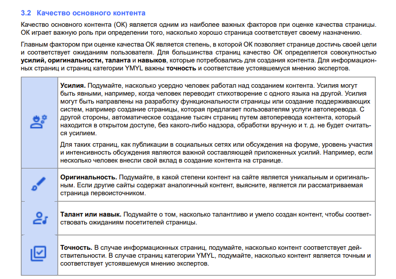 Контент, созданный экспертами, будет более полезным для пользователей. Экспертиза особенно важна для тематик, связанных с YMYL (Your Money or Your Life) – контентом, который может оказать влияние на сохранение здоровья, благосостояния, безопасности читателей.