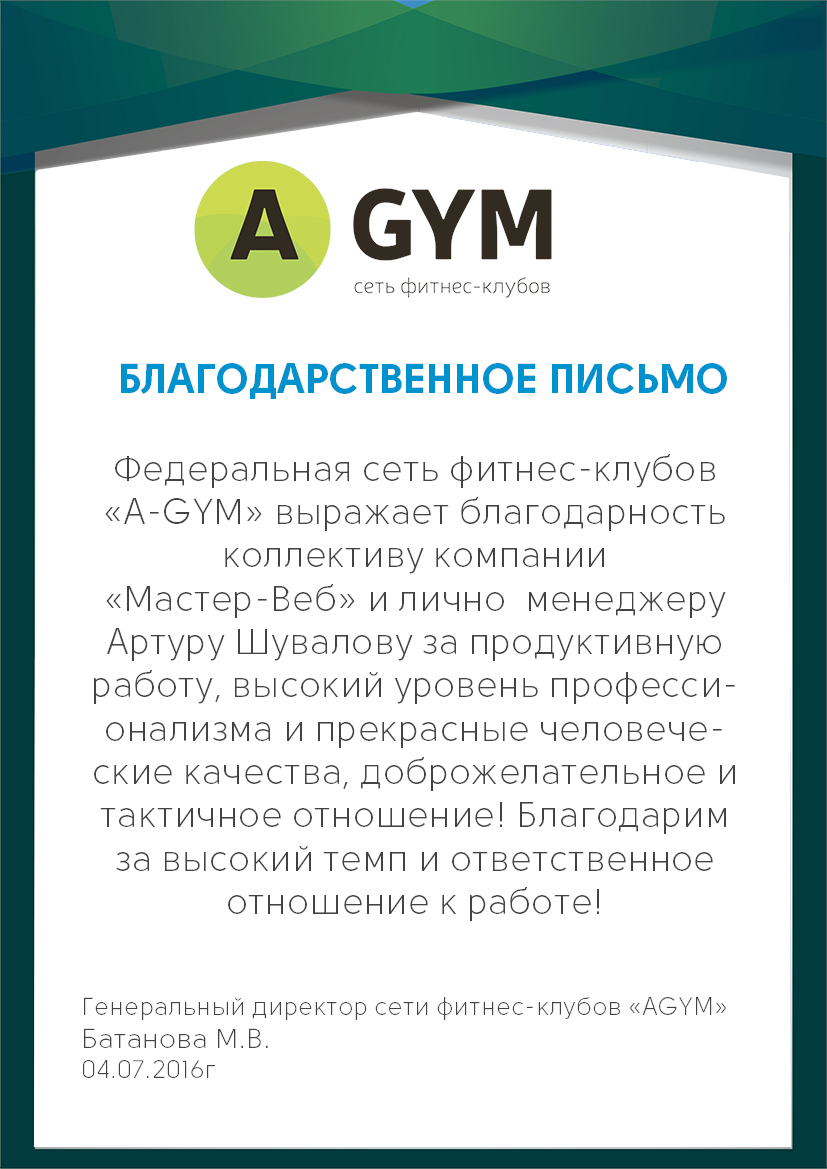 Настоящим письмом хотим выразить признательность и благодарность коллективу компании ООО "МастерВеб Эксперт".