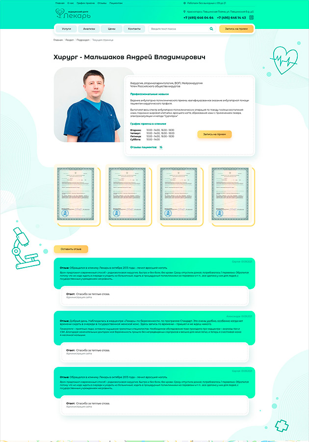 Учтены требования поисковых систем и законодательства к медицинским сайтам.