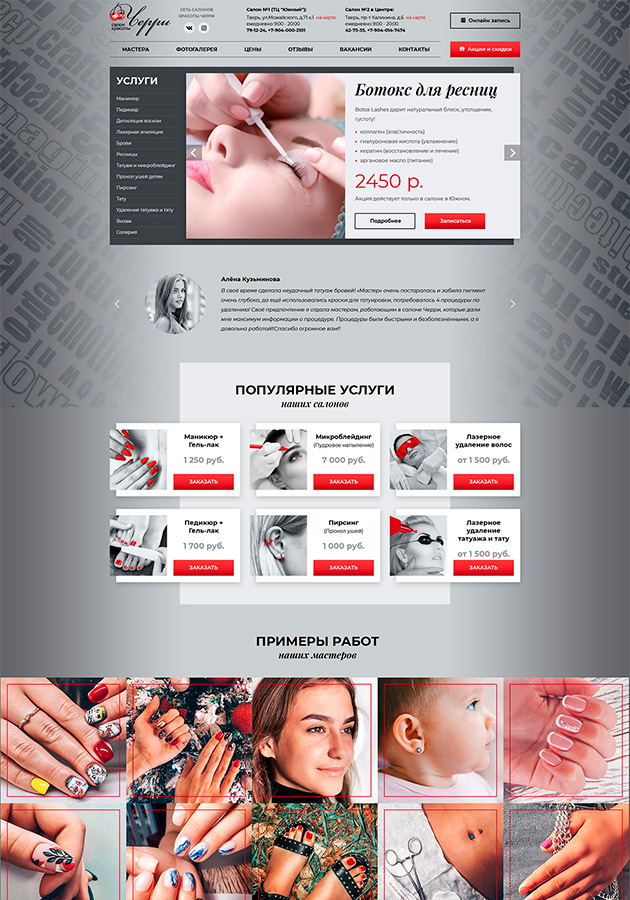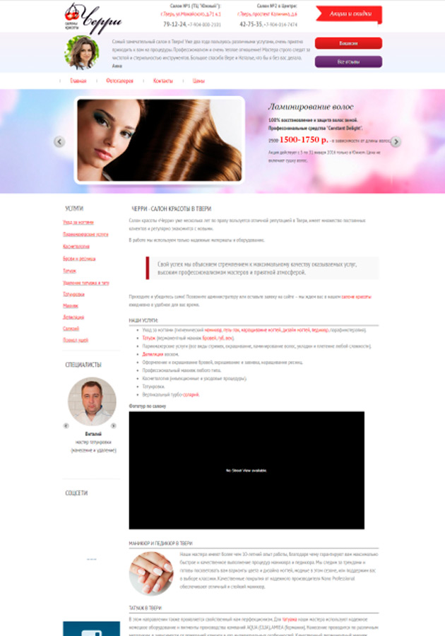 Особым пожеланием заказчика был дизайн сайта в стилистике самих салонов. Поэтому при разработке фирменного стиля сайта использовали цветовую гамму и стиль самих салонов красоты.