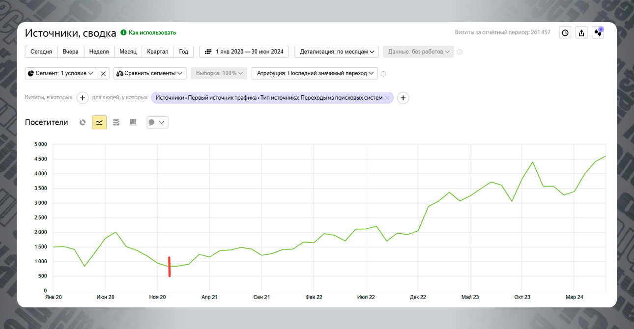 С учетом важности сохранения текущих позиций и посещаемости сайта, в проекте разработки принимал участие SEO-специалист. Наша основная цель при редизайне заключалась в том, чтобы не только сохранить текущий трафик, но и заложить фундамент для его дальнейшего роста.